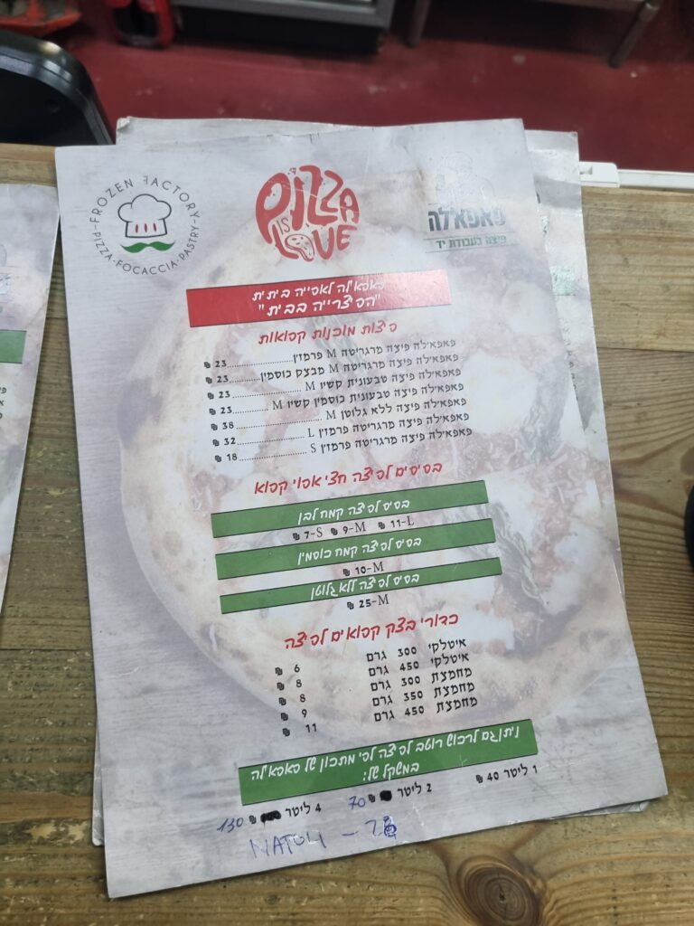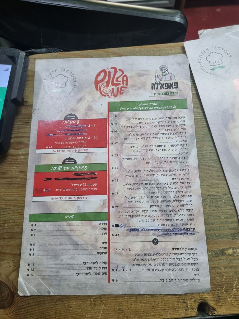 מבחר תמונות מהפיצריה שצילמנו – הפיצריה פיצה פאפלה נמצאת בבנין המשרדים בקומה הראשונה שני גרדי מדרגות